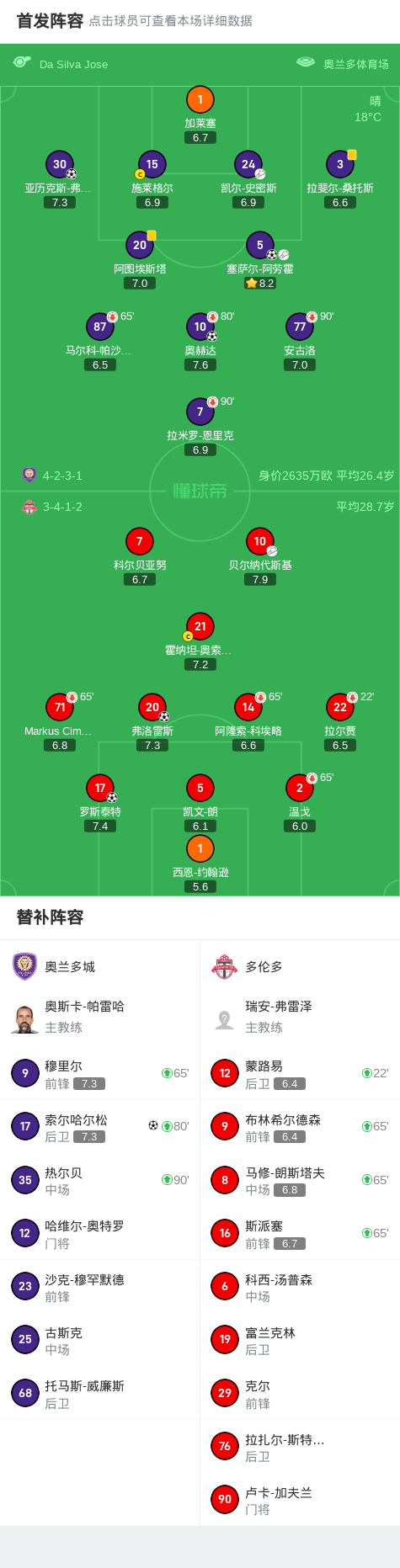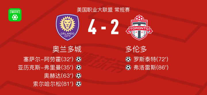 奥兰多城4-2多伦多,索尔哈尔松、奥赫达破门