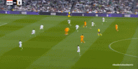 而从皇马的角度来说,也展现出了皇马在针对这一点的防守强度有多么低,当伊斯科在后腰线上接球处理的时候,这本来是两个突前球员之一的防守职责,但你自然很难指望姆巴佩和维尼修斯一直进行防范。