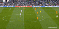 然而,这两个球员的个头如此,皇马自然也不能轻易用传中来寻找,所以开局阶段,皇马的进攻其实打得有些保守,大多以控制球权为主,但皇家贝蒂斯缩起来,也很难在局部找到打小球的机会,所以还是要从外围起脚,但起脚的结果自然不会好: