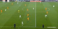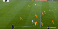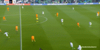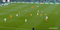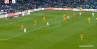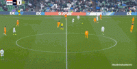 就像第30分钟这次进攻,一次流畅的大禁区线高度上的从左至右的横移,最终由插上的右后卫送出传中,形成攻门: