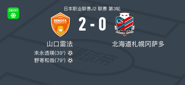北京时间3月2日,日本职业联赛J2联赛第3轮,山口雷法主场迎战北海道札幌冈萨多。比赛中,山口雷法表现出色,末永透瑛和野寄和哉分别为球队建功。最终,山口雷法以2-0战胜北海道札幌冈萨多,取得了一场宝贵的胜利。