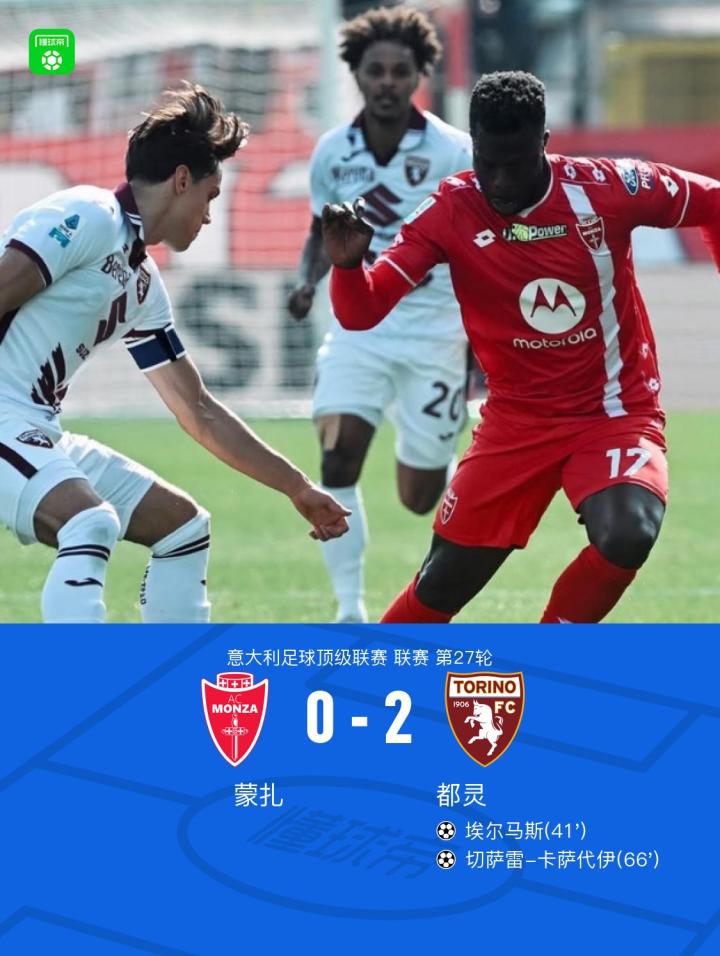 蒙扎0-2都灵,埃尔马斯破门,卡萨代伊建功