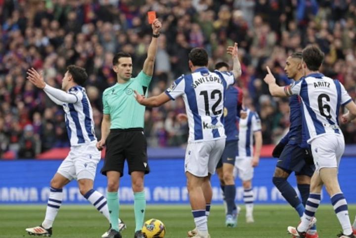 皇家社会最近三轮西甲拿到3张红牌,与此前74场红牌数持平LaPulga @懂球帝2025-03-02 23:49在皇家社会客场对阵巴塞罗那的比赛中,埃卢斯通多开场不久后被红牌罚下,在最近三轮西甲联赛中,皇家社会球员吃到了三张红牌。在本场比赛开场第16分钟,埃卢斯通多因为作为最后一名防守球员犯规,被主裁判直接出示红牌罚下。在第24轮皇家社会客场对阵皇家贝蒂斯的比赛中,皇家社会球员吃到了两张红牌。据统计,皇家社会最近三轮西甲比赛吃到了三张红牌,与他们此前74场比赛拿到的红牌数持平。展开更多