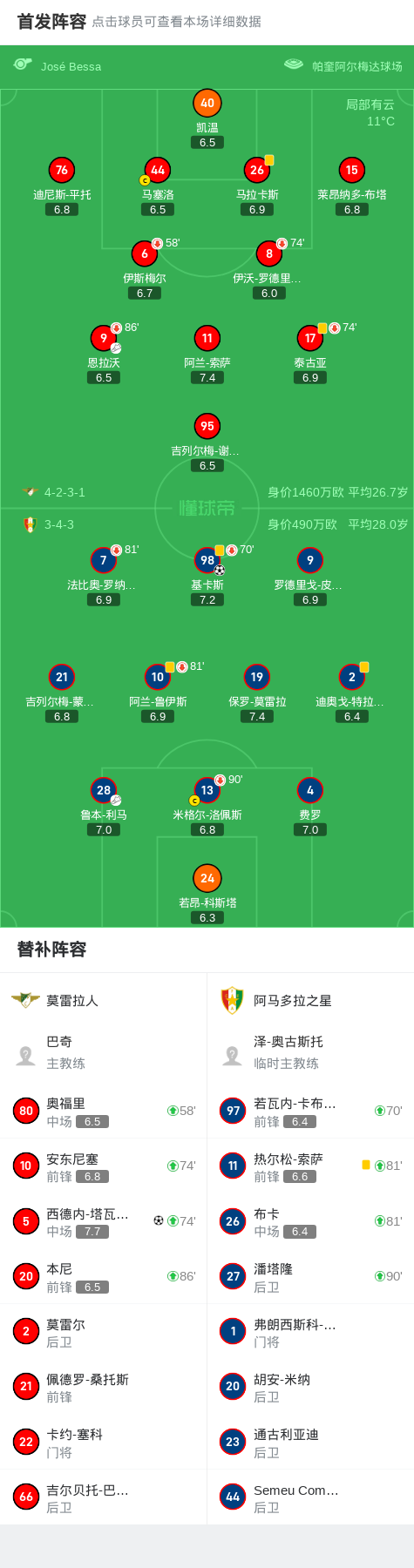 莫雷拉人1-1阿马多拉之星,基卡斯破僵,西德内-塔瓦雷斯扳平比分