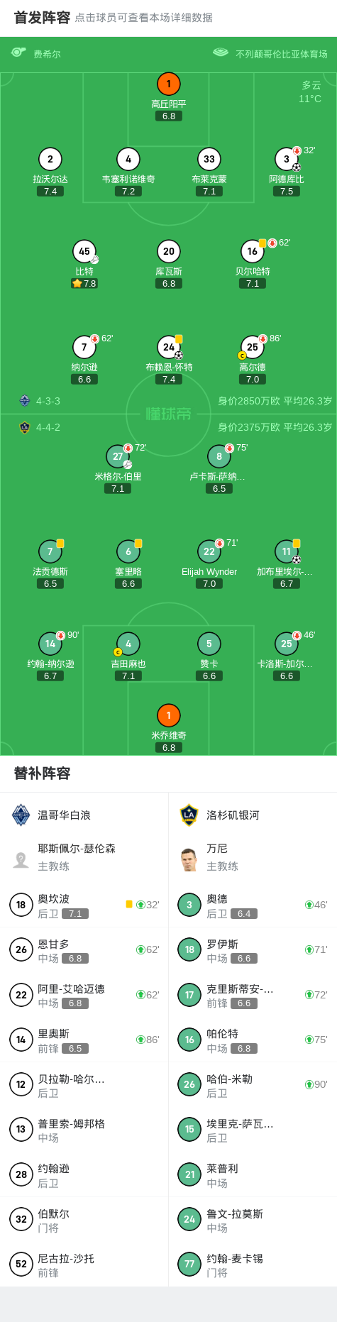 温哥华白浪2-1洛杉矶银河,布赖恩-怀特建功,阿德库比破门