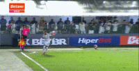 第52分钟,布拉甘蒂诺红牛球员头球攻门,皮球击中门框弹出