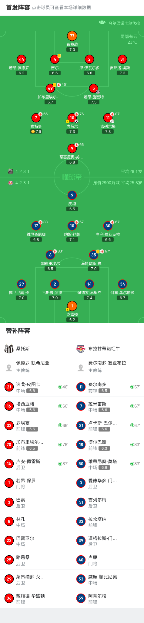 桑托斯2-0布拉甘蒂诺红牛晋级4强,内马尔任意球破门+伤退
