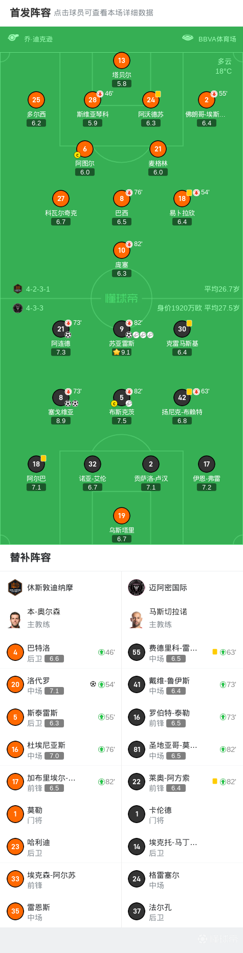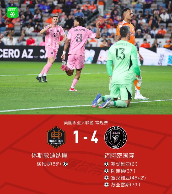迈阿密国际4-1客胜休斯敦,苏亚雷斯1射3传,塞戈维亚双响