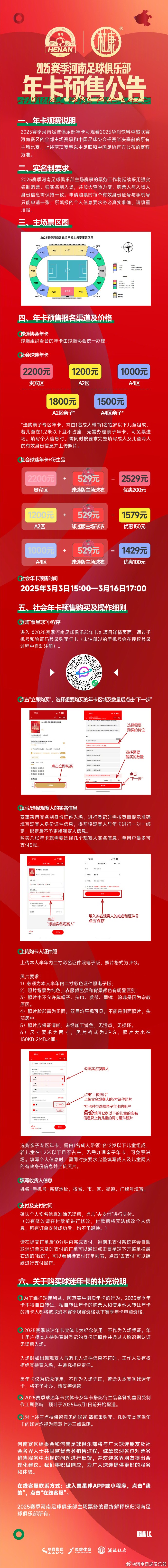 北京时间3月3日,河南足球俱乐部发布新赛季主场年卡预售公告,社会年卡共分5档,价格1000-2200元。