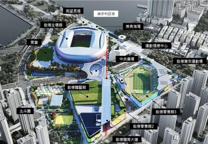 启德体艺馆毗邻维多利亚海滨,是前启德机场北停机坪旧址。该场馆造价299亿元人民币,耗时6年完成,成为全球第二贵的体育场馆。2025年3月1日正式启用,园区包括可容纳约5万名观众的主场馆、1万个座席的室内体育馆,以及设有5000个座席的室外公众运动场。
