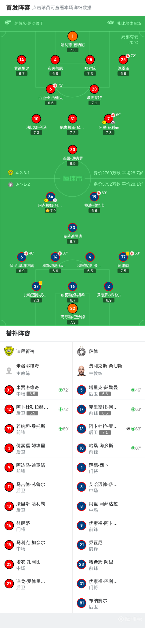 迪拜祈祷1-1战平萨德,阿里-萨利赫、阿卜杜拉-亚齐迪破门