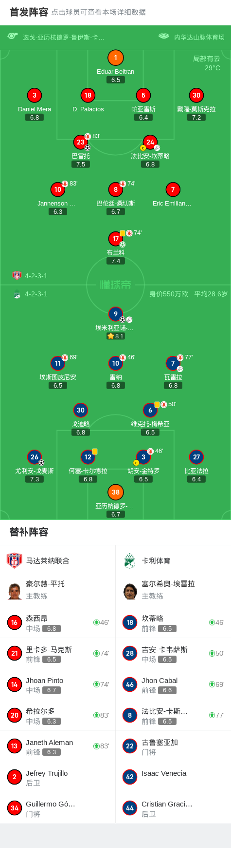 下半场补时第5分钟,卡利体育球员埃米利亚诺-罗德里格斯助攻尤利安-戈麦斯打入一球。