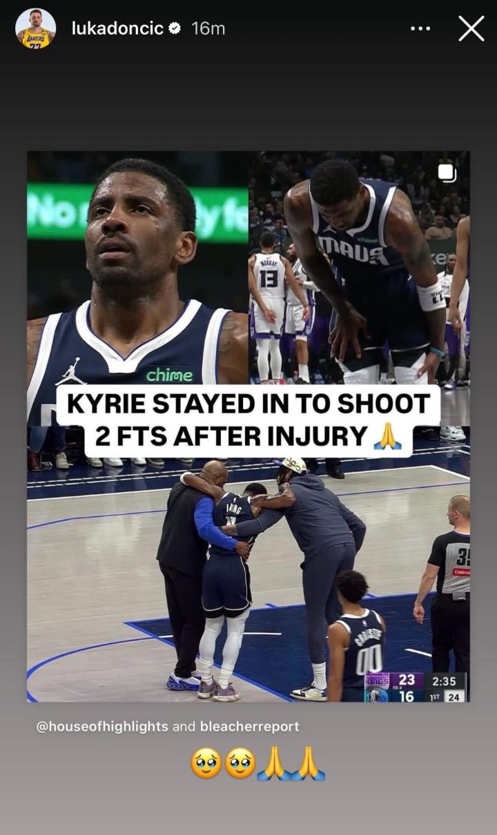 在上月被独行侠交易到湖人的东契奇第一时间更新个人社媒,为自己的前搭档祈福。他晒出欧文受伤的图集,并配上“🥹🥹🙏🙏”的表情。