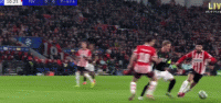 第43分钟,帕尔特伊送点,诺阿-朗主罚命中扳回一球!埃因霍温1-3阿森纳