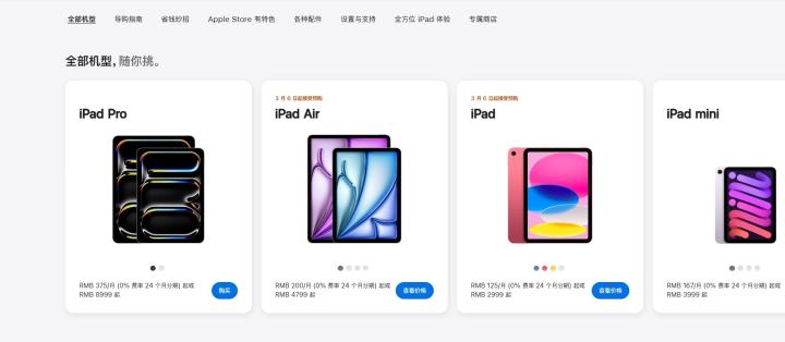 苹果官网上线两款新iPad:售价分别为4799元起和2999元起
