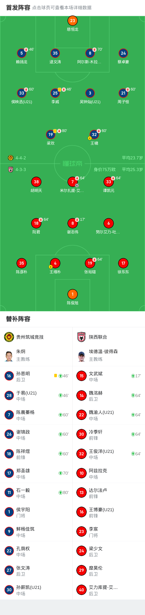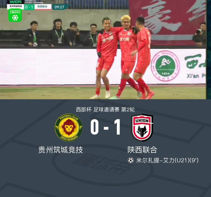 西部杯贵州筑城竞技0-1陕西联合,米尔扎提致胜
