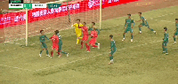 第19分钟,陕西联合角球罚入禁区,米尔扎提头球攻门击中横梁