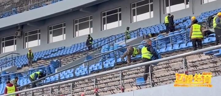 辽望体育记者透露,体育场内座椅拆除工作开始紧锣密鼓进行中。据了解,建筑工人今天是刚刚进场。另外,体育场外场正在清除地砖,两台挖掘机和两台铲车在同时进行工作。