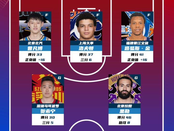 3月7日,CBA联赛官方公布常规赛第36轮最佳阵容,北京男篮球员曾凡博和上海男篮外援洛夫顿领衔,福建男篮外援路易斯-金、深圳男篮后卫贺希宁和北控男篮外援里勒一同入围。