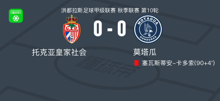 北京时间3月7日,洪都拉斯足球甲级联赛秋季联赛第10轮,托克亚皇家社会坐镇主场迎战莫塔瓜。双方在比赛中均未能打破僵局,最终以0-0握手言和。 比赛尾声阶段,莫塔瓜队的塞瓦斯蒂安-卡多索因严重犯规被主裁判出示红牌罚下,这一事件给比赛增添了紧张气氛。尽管如此,两队均未能在剩余时间内改写比分。