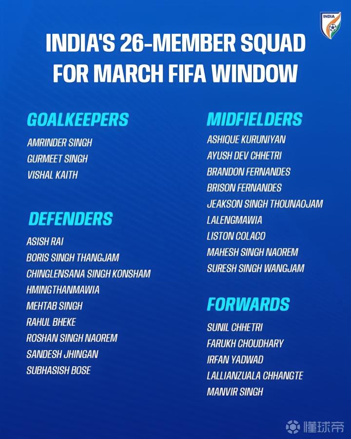 官方:印度传奇切特里回归国家队;今年8月他将年满41岁