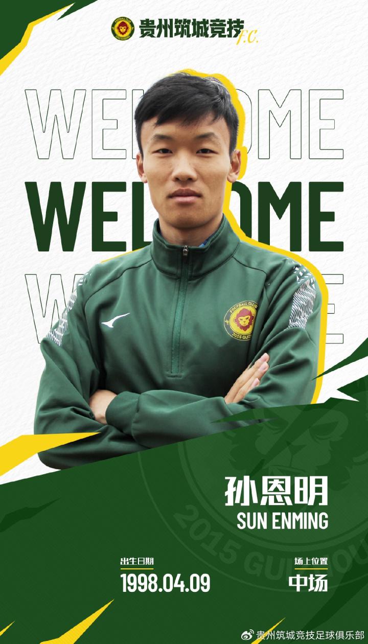 北京时间3月7日,贵州筑城竞技足球俱乐部官方宣布,中场孙恩明正式加盟球队。