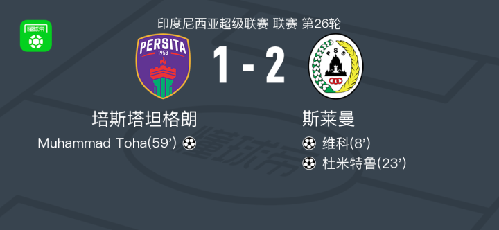 北京时间3月7日,印度尼西亚超级联赛第26轮,培斯塔坦格朗主场迎战斯莱曼。比赛中,斯莱曼凭借维科的精彩表现率先打破僵局,随后维科再度送出助攻,帮助杜米特鲁再下一城。尽管培斯塔坦格朗由Muhammad Toha扳回一球,但未能改变比赛走势。最终,斯莱曼以2-1战胜培斯塔坦格朗。