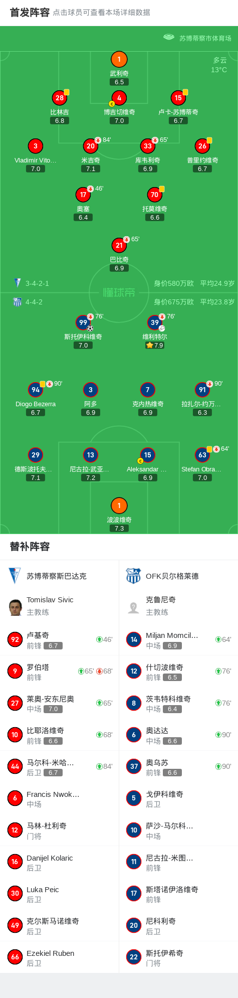 第21分钟,OFK贝尔格莱德球员维利特尔助攻斯托伊科维奇打入一球。