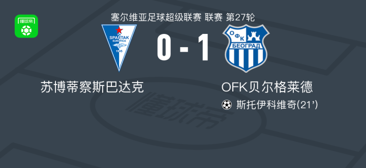 OFK贝尔格莱德1-0萨博迪卡,斯托伊科维奇助球队取胜