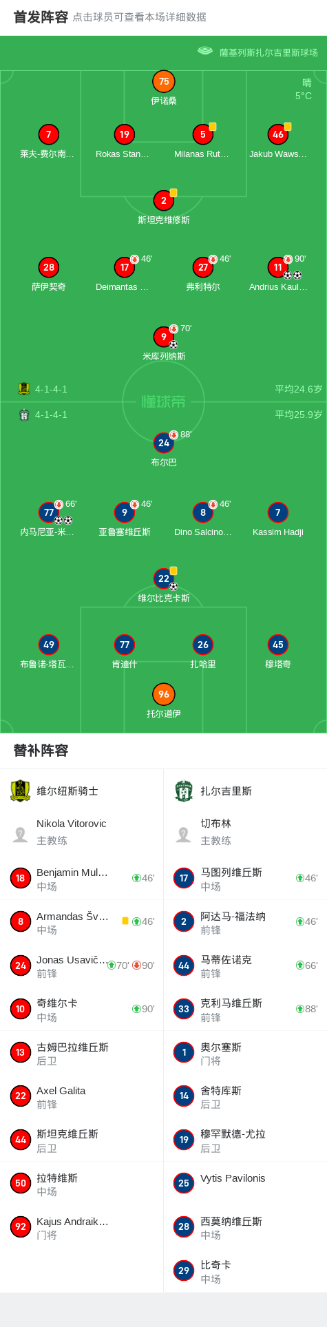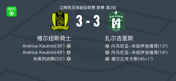 维尔纽斯骑士3-3扎尔吉里斯,内马尼亚-米哈伊洛维奇破僵,米库列纳斯扳平比分