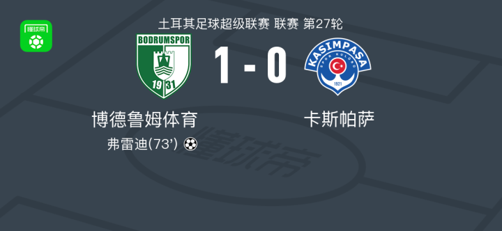博德鲁姆体育1-0卡斯帕萨,弗雷迪助球队取胜