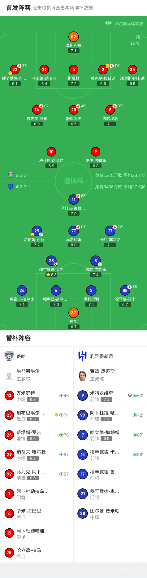 北京时间3月8日,沙特阿拉伯联赛第24轮,费哈主场迎战利雅得新月。上半场卡努头球破门,库利巴利头球造险,下半场达瓦萨里击中立柱,随后达瓦萨里禁区射门滑门而出,米特罗维奇推射破门锁定胜局。最终,费哈以0-2不敌利雅得新月。