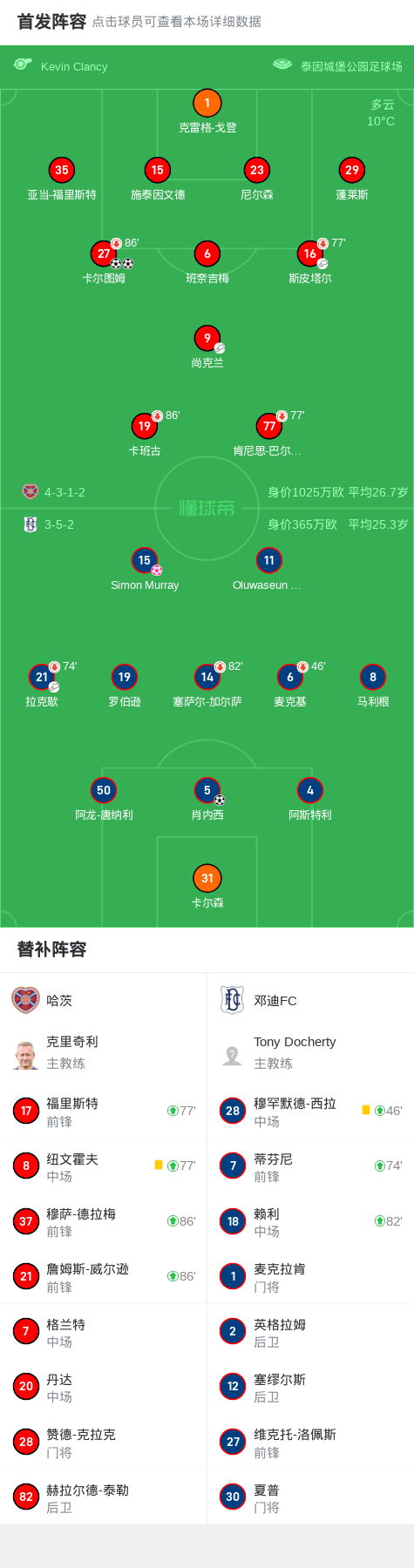 在北京时间3月8日进行的苏格兰杯半准决赛中,哈茨迎战邓迪FC。比赛中,卡尔图姆表现出色,成功梅开二度,为哈茨奠定了胜局。邓迪FC方面,肖内西攻入一球,但不幸的是,Simon Murray在比赛中不慎自摆乌龙。最终,哈茨以3-1战胜邓迪FC,顺利晋级下一轮。