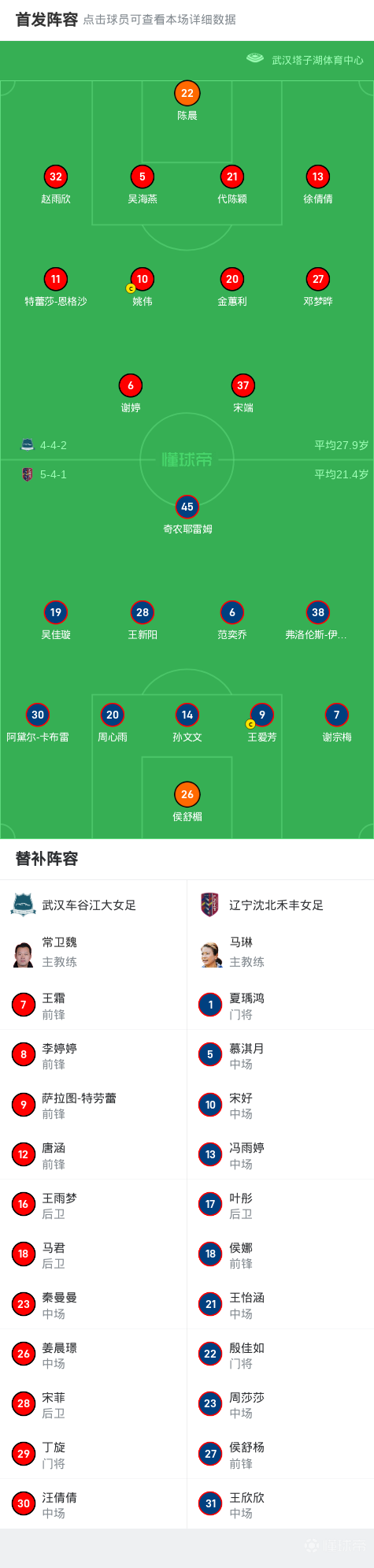 辽宁沈北禾丰是去年女甲联赛的冠军,刚刚升入女超。但她们引进了三名来自非洲的外援,大大提升了球队实力。本场比赛,这三名外援全部首发。而武汉车谷江大安排特蕾莎、金蕙利两名外援首发,萨拉图-特劳蕾在替补席。