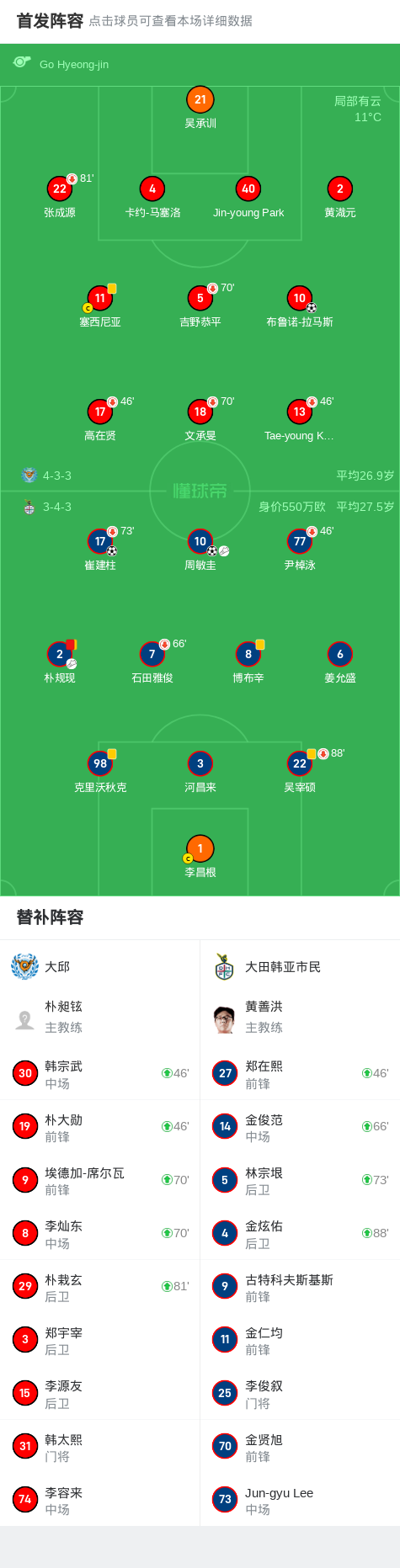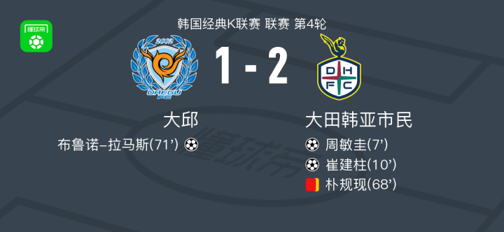 大田韩亚市民2-1大邱FC,崔建柱建功,周敏圭1射1传