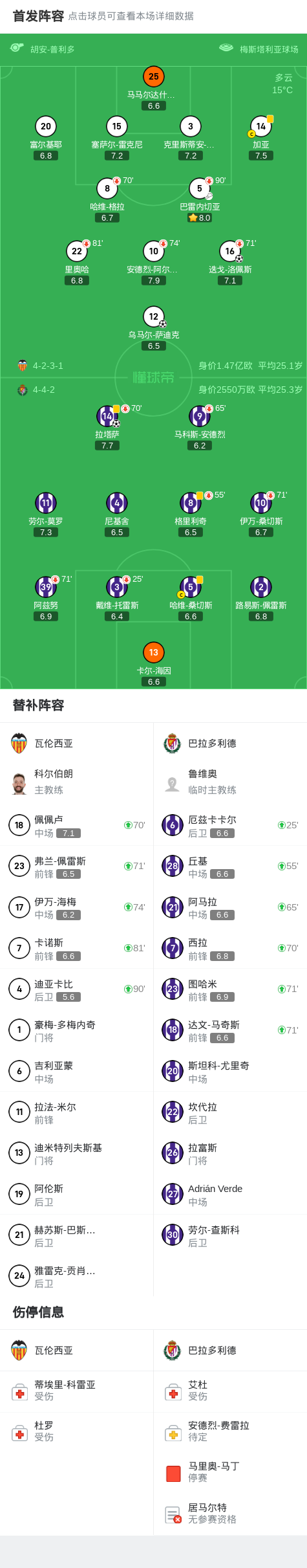 在北京时间3月9日进行的西班牙足球甲级联赛第27轮中,瓦伦西亚主场迎战巴拉多利德。比赛中,瓦伦西亚凭借迭戈-洛佩斯和乌马尔-萨迪克的进球取得领先,其中乌马尔-萨迪克的进球由巴雷内切亚助攻完成。巴拉多利德则由拉塔萨扳回一城。最终,瓦伦西亚以2-1战胜巴拉多利德。