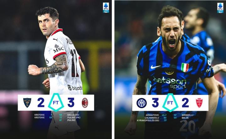 米兰双雄在意甲第28轮分别对阵莱切和蒙扎,结果他们似乎拿到了相同的“剧本”。据统计,这也是他们在意甲历史上首次在同一轮出现让二追三的情况。