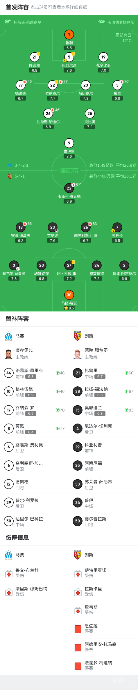 马赛0-1朗斯,艾纳维绝杀,路易斯-恩里克造险