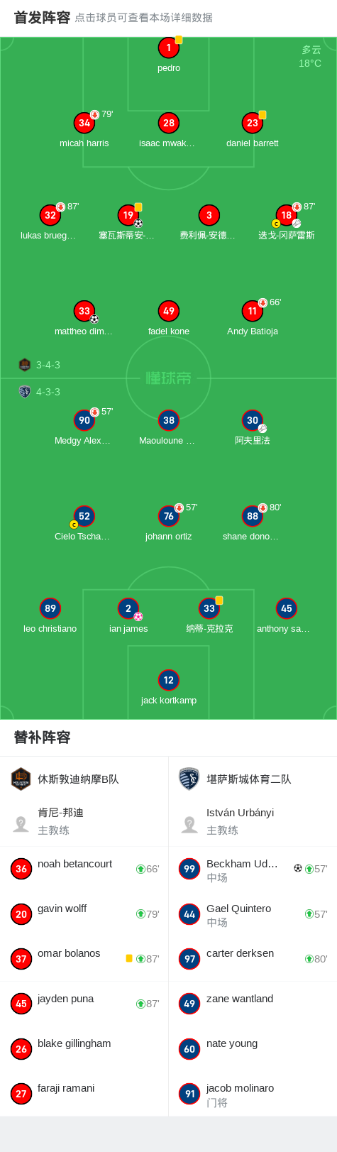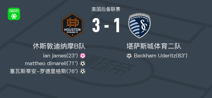 休斯敦迪纳摩B队3-1堪萨斯城体育二队,塞瓦斯蒂安-罗德里格斯、mattheo dimareli建功
