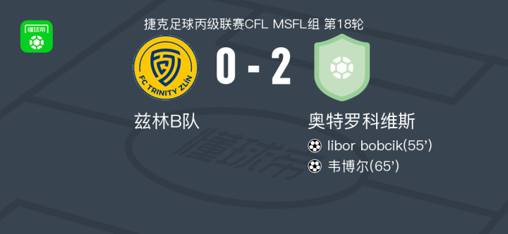 奥特罗科维斯2-0兹林B队,libor bobcik建功,韦博尔锦上添花