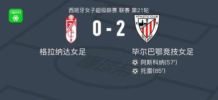 毕尔巴鄂竞技女足2-0格拉纳达女足,阿斯科纳建功,托雷锁定胜局