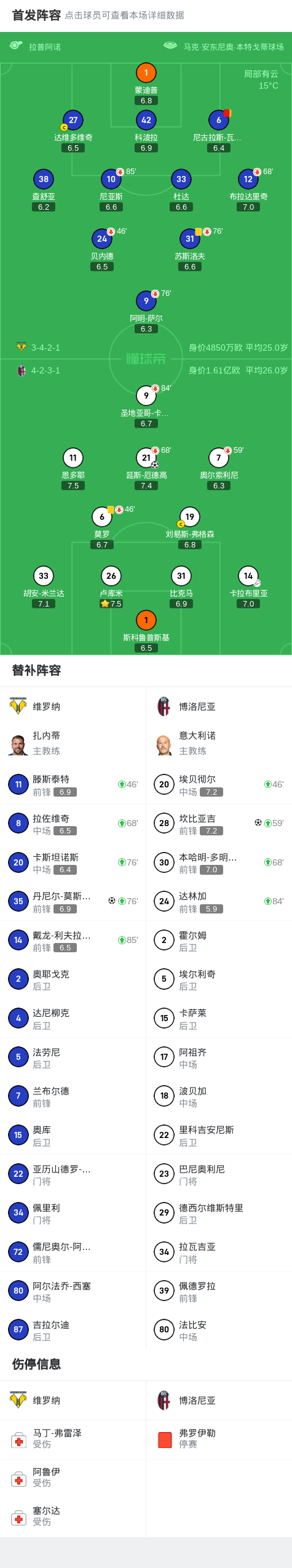 第78分钟,博洛尼亚球员本哈明-多明格斯助攻坎比亚吉打入一球。