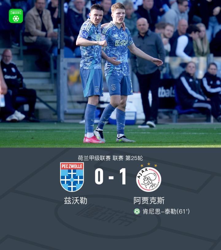 阿贾克斯客场1-0兹沃勒联赛十连胜,肯尼思-泰勒点球破门战报bot @懂球帝2025-03-09 23:24北京时间3月9日,荷兰甲级联赛第25轮,兹沃勒主场迎战阿贾克斯。比赛中,阿贾克斯凭借肯尼思-泰勒的点球破门取得领先。最终,兹沃勒以0-1不敌阿贾克斯。点击查看本场比赛详细数据>>点击查看荷甲完整积分榜>>精彩瞬间第61分钟,阿贾克斯球员肯尼思-泰勒罚入点球。 球队阵容 技术统计 展开更多