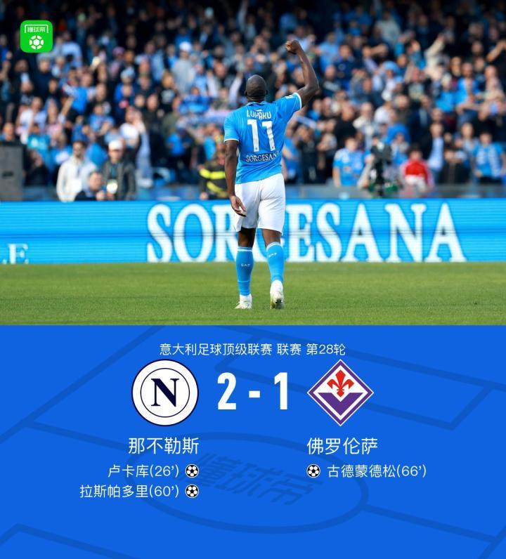 那不勒斯2-1佛罗伦萨,卢卡库传射,拉斯帕多里建功