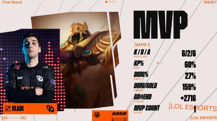 第10分钟,Vladi被Yeon隔墙打残,随后Yeon过墙将其击杀,1-1。