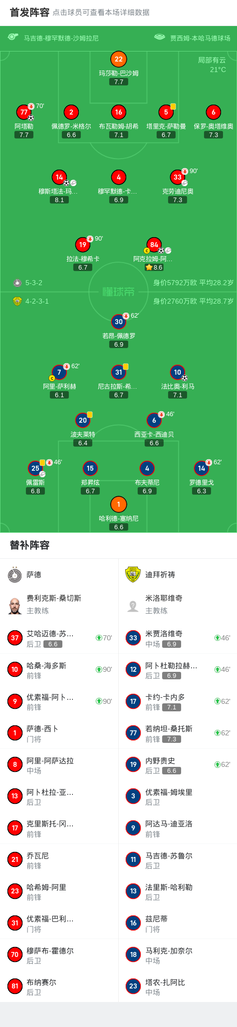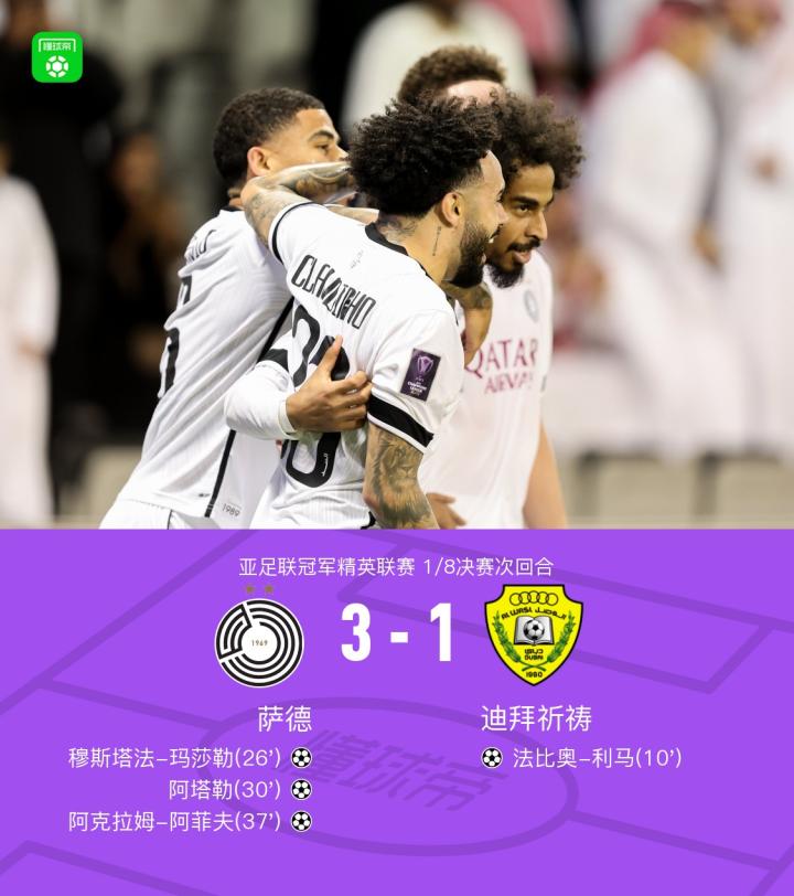 萨德3-1逆转迪拜祈祷成功晋级,玛莎勒建功,阿塔勒、阿菲夫破门