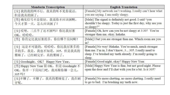 美国队员随后在语音电话中说就住在我斜对面10米内的房间,邀请我继续探讨,我敲门进入,短暂停留后返回自己房间(全程不到1分钟)。