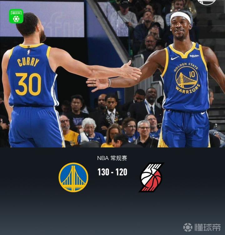 勇士130-120开拓者迎5连胜,库里24分,巴特勒15+10+10,阿夫迪亚34+16