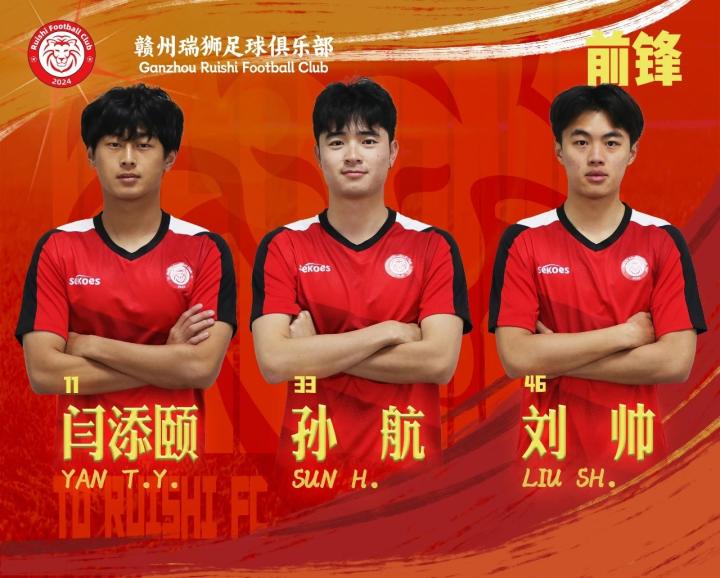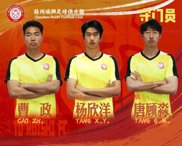 即日起,球员曹政、王铎霖、黄钰轩、俸泽源、魏政鸿、廖浩川、周炳旭、王锦鹏、闫添颐、韩沐凡、耿志庆、付杰、李京润、郭泳初、吕悦枫、李炎、张培鸣、杨翼璇、李嘉灏、李晓挺、孙航、吴清华、杨欣洋、刘帅、庞童、吴昕泽、唐顾淼、刘冠君、袁永治、喻克力、范闻昇共31名球员加盟赣州瑞狮足球俱乐部。