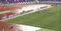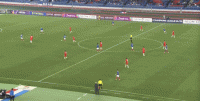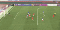 第28分钟,徐新尝试凌空射门,皮球踢疵